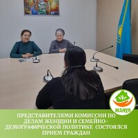 3 февраля текущего года в Центре поддержки института семьи «Жанұя» акимата города Астаны представители комиссии по делам женщин и семейно-демографической политике при акимате города Астаны провели прием граждан.
